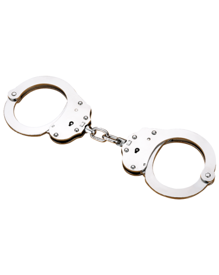 Grilletes o esposas de alta calidad de fabricación Española desde 1918 por la empresa Larrañaga y Elorza. Actualmente exporta a más de 90 países en el mundo. Grilletes de cadena con acabado niquelado de doble cierre en ambos lados.
