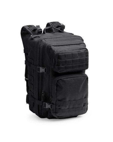 Mochila estilo deportiva realizada con resistente políester 600D. Espalda y hombros acolchados. Amplia variedad de bolsillos tanto frontales como interiores. Compartimento principal con apertura completa y con doble tirador de cierre e interior con 3 bolsillos. Zona frontal de velcro. Ajustadores laterales. Bolsillo antirrobo en la parte trasera. Gran capacidad de 45 L. Una mochila completa para cualquier actividad.