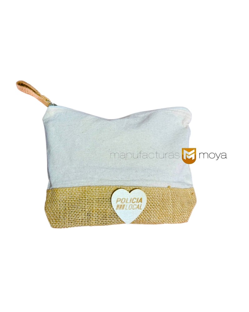 Neceser línea eco de algodón de 180 g/m² y yute en color natural. Base y tirador en yute. Cremallera con tirador de yute a juego.