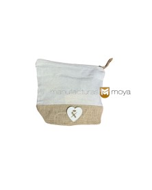 Neceser línea eco de algodón de 180 g/m² y yute en color natural. Base y tirador en yute. Cremallera con tirador de yute a juego.