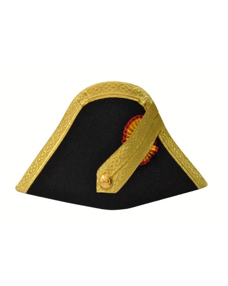 Armazón totalmente artesanal de corcho natural, antitermico natural, forrado en fieltro negro de primera calidad, con galón en oro, escarpela y botón dorado. Forro interior raso con badana de piel. Producto anatómico, adaptación perfecta a la cabeza. No se deforma al caerle lluvia.