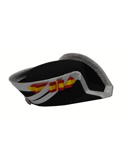 Armazón totalmente artesanal de corcho natural, antitermico natural, forrado fieltro negro de primera calidad, con galón plateado en alambrillo de plata, forro interior raso con badana de piel y con escarpela. Producto anatómico, adaptación perfecta a la cabeza. No se deforma al caerle lluvia.