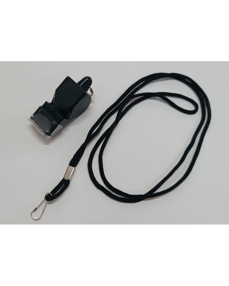 Silbato policial o de entrenamiento con boquilla de silicona y cordón.