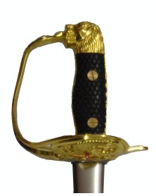 Sable de la Guardia Civil aún en uso en desfiles y en uniformes de parada. Empuñadura con guardamanos dorado y efigie de un león dorado en el pomo, además de filigranas doradas en el resto del guardamanos. La hoja no tiene filigranas, recta y sencilla. La vaina es plateada y a juego. Realizado en acero toledano de 440º. El sable tiene una longitud de unos 80 centímetros aproximadamente.