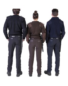 Pantalón bistretch unisex tejido softhell. 5 bolsillos con cremalleras resistentes al agua. Tejido extensible y cintura elástica. Bajos con cordón elástico y pieza ajustable. Ideal para vigilantes de seguridad, personal de servicios o para uso individual.